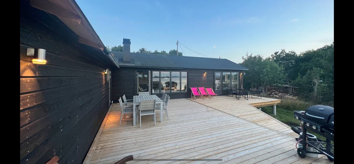 En magisk villa i Karlskrona skärgård. Byggd ursprungligen på 60-talet, men totalrenoverad 2022, allt är nytt. Enastående utsikt och kontakt med havet. Mycket stor terass runt huset med sjöutsikt från alla sektioner. Grill, tre olika sittplatser och ett enklare gym på verandan. 3 bra sovrum med upp till 8 sovplatser. Ett master-bedroom med kontorsplats vid havet, walk-in-closet och en-suite-badrum. Ett "barnrum" med familjevåningssäng, 140cm bred nere och 80cm bred uppe kan vara upp till 3 personer här. Ett gästrum i norr med kontorsplats med havsutsikt o utgång till verandan, med dubbelsäng och stor garderob. Här finns också en enkelsäng. Två moderna badrum med eco-toaletter (separation). Eget nytt vatten och avlopp. Fiber 250mbit. TV. Två enastående kontorsplatser. Kök med allt man kan önska sig. Stort o härligt vardagsrum med stor soffa och en rejäl matplats 6-10 personer. 50" smart-TV. Braskamin som ger en magisk känsla vid havet. Bastu finns att låna i huset bredvid. Badplats och egen brygga. Granne med 140.000kvm naturmark och klippor. 10km till ICA Sturkö, 33km till Karlskrona centrum. Två parkeringsplatser. Perfekt att möta våren vid havet för författare, konstnärer, nyblivna pensionärer, fiskaren, distansarbetaren mfl.